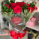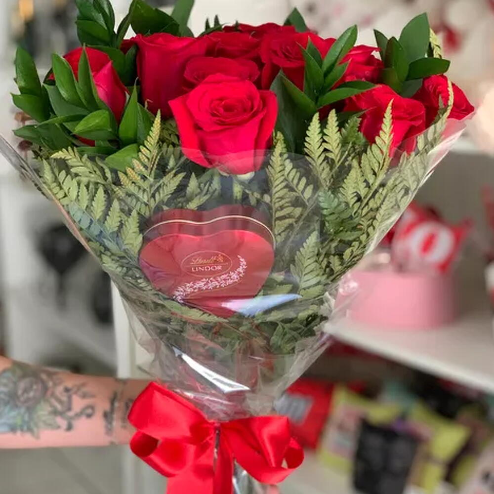 Este presente maravilhoso é composto por uma dúzia de rosas frescas e vibrantes, um irresistível coração de chocolate Lindt, uma seleção de folhagens elegantes, embrulhado em celofane transparente com um toque final de um laço de cetim. Uma combinação perfeita de beleza e sabor que certamente encantará qualquer um.