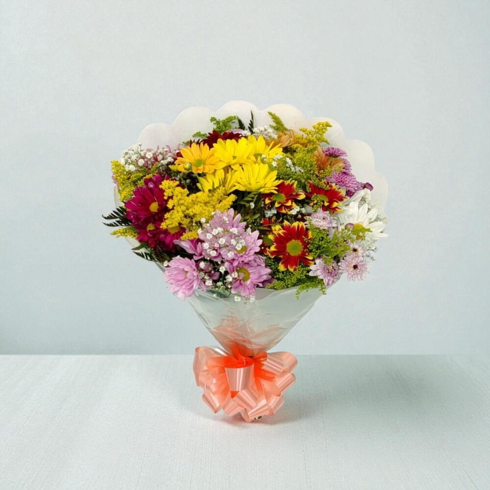 Este encantador arranjo de Flores do Campo é a escolha perfeita para todas as ocasiões. Composto por uma seleção cuidadosamente escolhida de flores do campo que impressionam pela sua beleza fresca e natural, este arranjo vem cuidadosamente embalado em uma embalagem elegante e adornado com um laço, garantindo um presente pronto para entregar momentos de alegria e beleza.