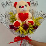 Este buquê deslumbrante é uma composição artística do melhor que a natureza tem a oferecer. Composto por uma fofa pelúcia singular que traz um toque de aconchego e ternura ao conjunto. Ele se harmoniza com três encantadoras rosas vermelhas, manifestando paixão e amor. O esplendor dessas flores é realçado por quatro tangos exuberantes que trazem um elemento de surpresa e requinte ao buquê. Esta é mais do que uma simples junção de flores e pelúcia; é uma declaração de afeto que fará o destinatário se sentir verdadeiramente especial.