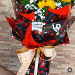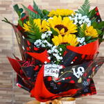 Este é um buquê feito com amor e delicadeza, composto por 5 girassóis naturais, que trazem consigo a alegria e a luz do sol. A sua composição é complementada por 2 unidades de ramagem, cuidadosamente selecionadas para dar volume e verdejante frescor ao conjunto. O arranjo é magnificamente embrulhado em uma embalagem de qualidade, e finalizado com um laço charmoso, acrescentando um toque de elegância e sofisticação. É o presente perfeito para expressar sentimentos puros, calorosos e alegres em qualquer ocasião.