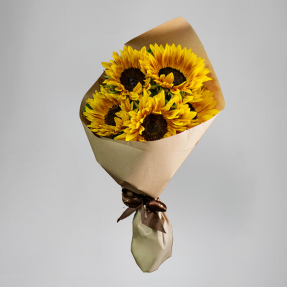 Para levar alegria a qualquer lado! Nosso bouquet de girassol leva 5 flores de girassol embaladas em papel kraft.