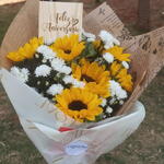 embalagem - 1 un. laço - 1 un. girassois - 5 un. complementos - 1 un. balão parabens - 1 un.