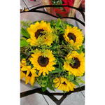 Deixe a magia da natureza invader os corações com este lindo buquê, repleto de alegria e cor. Composto por seis maravilhosos girassóis, que simbolizam lealdade e adoração, cuidadosamente arranjados com complementos verdes que realçam sua beleza inconfundível. Tudo perfeitamente acondicionado numa embalagem delicada e finalizado com um laço refinado para um toque final de elegância. Este buquê é a expressão perfeita de carinho e apreciação para quem o recebe.