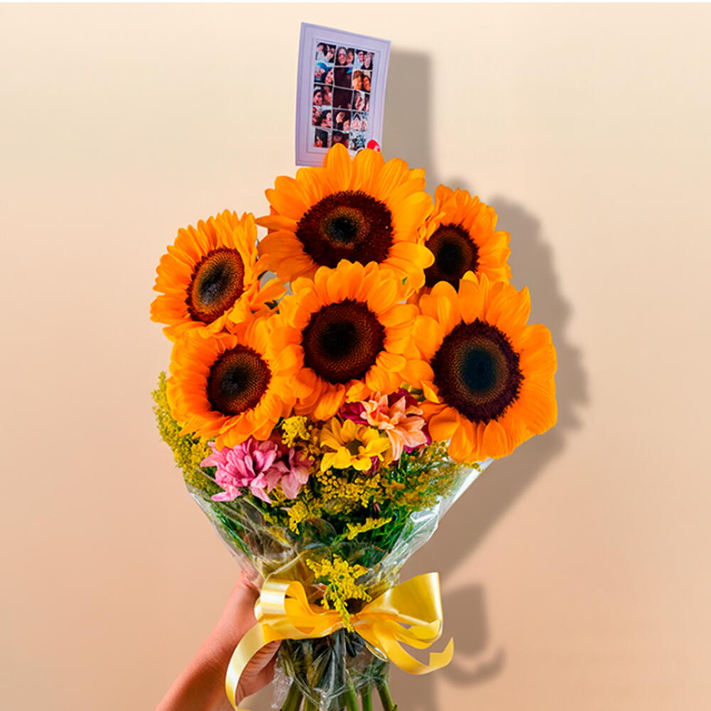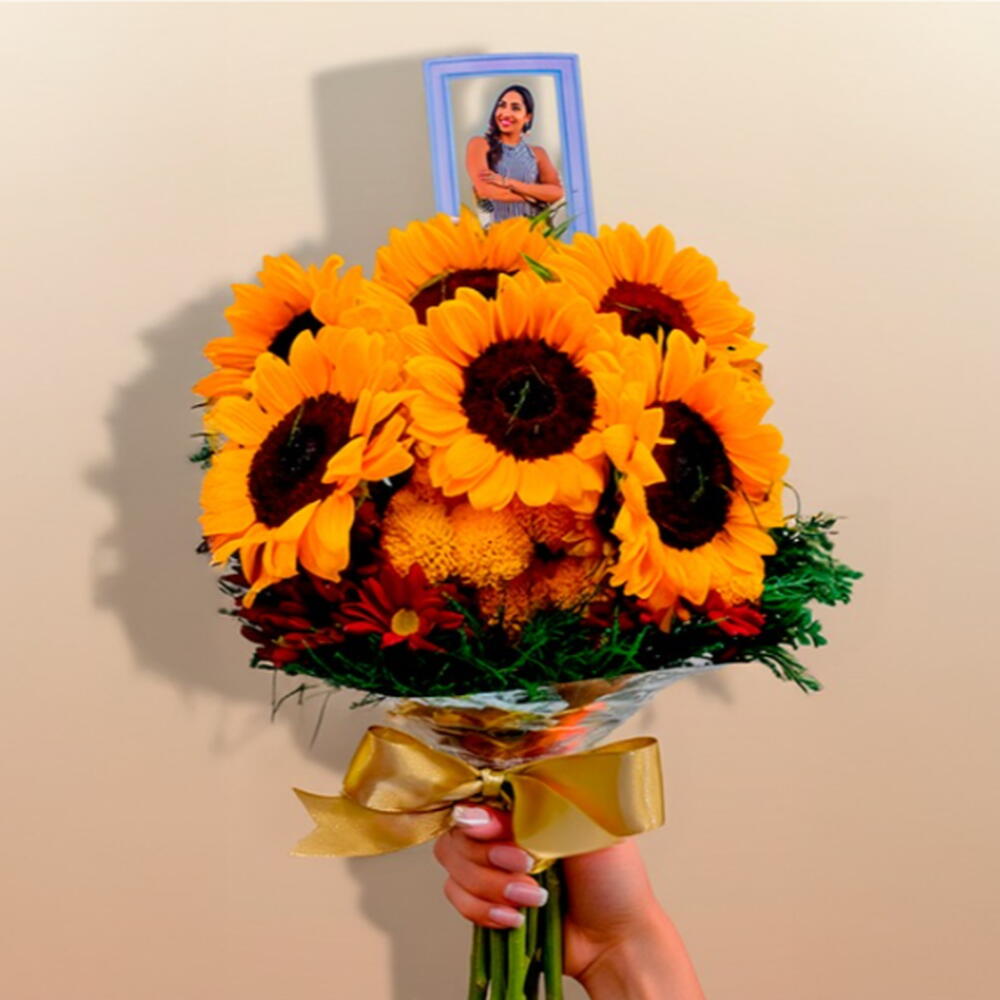 A Beleza que Fala Mais que Palavras O Buquê Grande com Girassóis e Flores do Campo é muito mais que um arranjo floral: é uma expressão de sentimentos genuínos traduzida em cores, aromas e texturas que tocam o coração. Cada girassol representa alegria, lealdade e admiração, enquanto as flores campestres trazem a delicadeza e a autenticidade da natureza selvagem. Os 6 girassóis naturais frescos são o destaque principal deste buquê, com seus pétalas vibrantes em tons de amarelo intenso que irradiam positividade e energia. Esses girassóis não são apenas flores: são símbolos de força, esperança e renovação. Sua presença imediata cria um impacto visual que não passa despercebido, transformando qualquer ambiente em um espaço mais luminoso e acolhedor. Complementando a beleza dos girassóis, as flores campestres variadas adicionam camadas de textura, cor e movimento ao arranjo. Essas flores silvestres trazem um toque de romantismo rústico, criando uma composição que equilibra a grandiosidade dos girassóis com a delicadeza das flores menores. Juntas, elas contam uma história de beleza natural, sem artifícios, pura e genuína. Personalização que Torna o Presente Inesquecível O que diferencia este buquê de qualquer outro é a personalização exclusiva que o acompanha. A cartinha personalizada com sua mensagem especial permite que você transmita seus sentimentos com autenticidade. Seja uma declaração de amor, uma mensagem de amizade, um agradecimento sincero ou uma palavra de encorajamento, suas palavras ganham vida quando acompanhadas por este buquê extraordinário. A plaquinha decorativa com foto personalizada (oferecida como cortesia) transforma o presente em um item memorável que o presenteado guardará com carinho. Essa plaquinha pode exibir uma foto especial de vocês dois, um momento marcante ou simplesmente uma imagem que represente o significado do presente. É um detalhe que demonstra cuidado, atenção e amor genuíno. A embalagem elegante envolve todo o buquê com sofisticação, garantindo que o presente chegue em perfeitas condições e crie um momento de desembalagem verdadeiramente especial. Cada detalhe foi pensado para que o presenteado sinta a importância e o carinho investido neste presente. O Significado Por Trás de Cada Flor Os girassóis carregam um simbolismo profundo que vai além de sua beleza visual. Conhecidos como as flores do sol, eles representam lealdade, longevidade e admiração genuína. Presentear com girassóis é dizer: Você é importante para mim, você me inspira, você traz luz à minha vida. Essa mensagem é especialmente poderosa quando acompanhada por flores campestres que reforçam a autenticidade e a naturalidade do sentimento. As flores do campo, por sua vez, simbolizam simplicidade, beleza despretensiosa e liberdade. Elas representam a beleza que existe nas coisas simples da vida, aquela que não precisa de artifícios para ser admirada. Quando combinadas com os girassóis, criam uma composição que fala de um amor ou amizade que é ao mesmo tempo forte e genuína, grandiosa e simples.