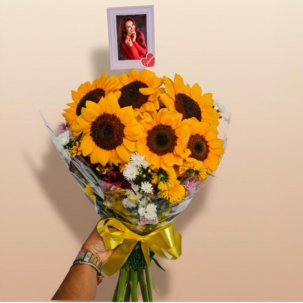 flores campestres variadas - 1 un. 6 girassol naturais frescos - 1 un.
