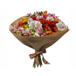 embalagem - 1 un. folhagens - 1 un. astroméria coloridas - 1 un. laço em cetim - 1 un.