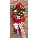 Encante o dia de alguém especial com este lindo buquê. Composto por duas rosas naturais, cuidadosamente selecionadas por sua beleza e frescor, o buquê é delicadamente envolto em uma embalagem elegante e finalizado com um laço sofisticado. Ideal para expressar seu carinho em qualquer ocasião.