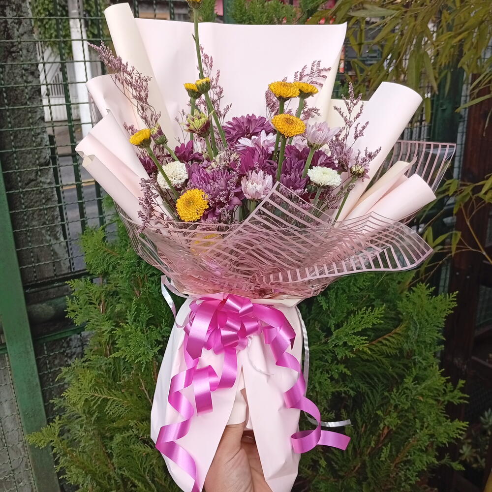 crisântemo e margaridas - 8 un. fantasia pink - 4 un. embalagem estilo coreano - 1 un.