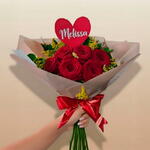 Lindo Buquê com 6 rosas vermelhas e folhagens naturais, acompanha cartinha com sua mensagem. (editamos sua mensagem em fonte manuscrita, imprimimos sua mensagem em folha ofício, com desenhos de acordo com o tema, enrolamos e fechamos com laço de fita de cetim). O buquê é personalizado com plaquinha com foto gratuitamente (brinde) - não é um porta-retrato. Por trabalhamos, exclusivamente, com flores naturais, elas poderão variar conforme a sazonalidade, desta forma, nenhum buquê será exatamente igual a outro (mesmo que a florista e o fornecedor seja o mesmo) A embalagem do buquê poderá mudar de acordo com a disponibilidade do mercado.