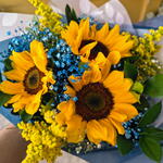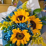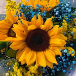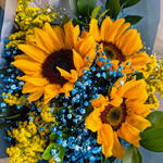 Adicione um pouco de luz e alegria ao seu dia com este maravilhoso buquê de girassóis. Este buquê, cuidadosamente arranjado com 3 girassóis brilhantes, é complementado por 5 delgados galhos de Tango, criando um contraste magnífico e cativante. E para um toque final de brilho e delicadeza, adicionamos 5 unidades de Chuva de Prata Azul. Este bouquet magnífico vem aconchegado em uma embalagem elegante com um laço encantador. Seja para um presente especial ou simplesmente para alegrar a sua casa, este bouquet não desaponta.