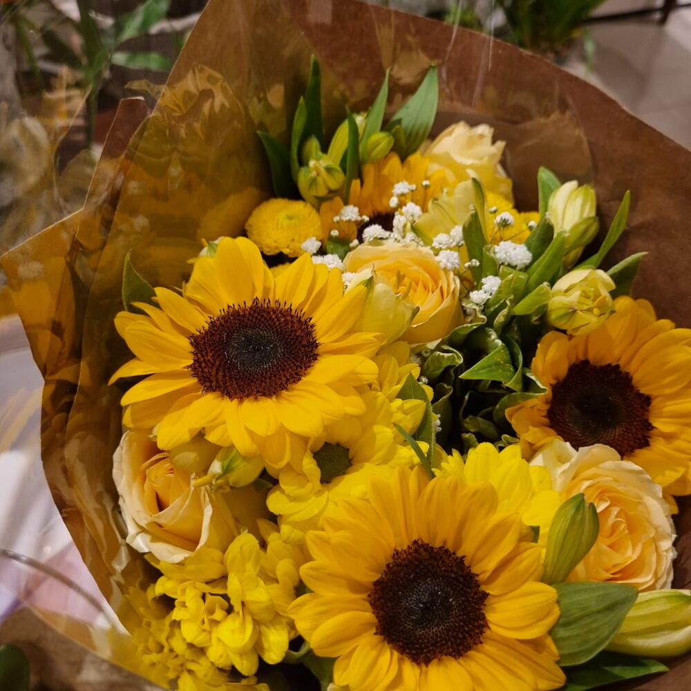 flores de girassol rosa amarelas rosa do campo amarelas alstromélias amarelas - 1 un.