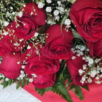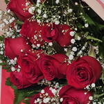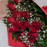 Encante-se com este requintado buquê composto por 12 rosas vermelhas vibrantes, delicadamente intercaladas com acentos de folhagens frescas. Este buquê é habilmente embrulhado em uma embalagem elegante e finalizado com um laço sofisticado. ideal para expressar amor ou simplesmente iluminar o dia de alguém.