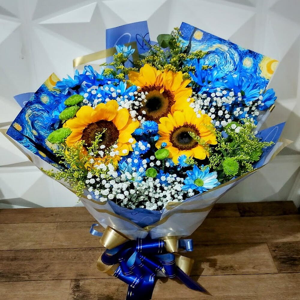 O arranjo Noite Estrelada Van Gogh é uma obra de arte em forma de flores, inspirado nas nuances e na beleza da famosa pintura. Com um toque de elegância e criatividade, ele transforma qualquer ocasião em um momento inesquecível. Obs: folhagens, embalagem e laço podem haver variações de cores e estampas de acordo com a disponibilidade do dia, mantendo toda beleza que este buquê tráz.