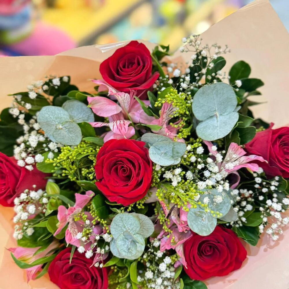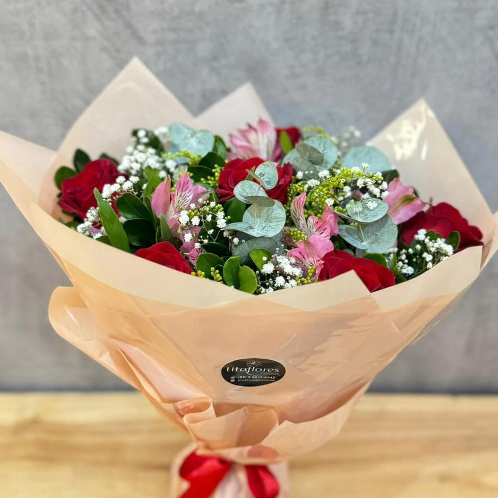 Um clássico que nunca sai de moda. O Buquê Paixão reúne 06 rosas vermelhas intensas, símbolo de amor eterno, acompanhadas de delicadas flores do campo e folhagens selecionadas. Sua embalagem romântica com detalhes de corações e laço de cetim torna esse arranjo ainda mais encantador e sofisticado. Perfeito para surpreender em datas especiais como aniversários, pedidos de namoro, bodas ou simplesmente para declarar amor de forma inesquecível. 🌹 Significado: as 12 rosas representam a completude do amor, a intensidade dos sentimentos e a promessa de eternidade.
