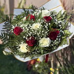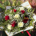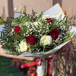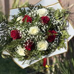 Este lindo buquê é composto por 5 rosas brancas e 5 rosas vermelhas, delicadamente arranjadas com folhagens e complementos. O acentuado toque final vem com um elegante laço que envolve o conjunto. Acompanha três unidades de nossa premium embalagem presenteável, tornando-o a opção perfeita para uma lembrança inesquecível.