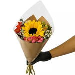 Este buquê é uma combinação perfeita de 1 unidade de girassol brilhante, laço elegante, embalagem de kraft rústico, 1 unidade de astroméria encantadora, mosquitinhos delicados e uma embalagem de celofane cristalina. Perfeito para ocasiões especiais ou simplesmente para iluminar o dia de alguém, este buquê é uma escolha que é ao mesmo tempo único e elegante.
