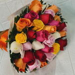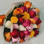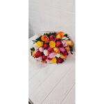 Encante a todos com este luxuoso arranjo de flores! Composto por 30 rosas coloridas, cuidadosamente selecionadas para a máxima beleza e frescor. Este lindo arranjo é complementado por um toque de folhagens verdes e decorado com uma embalagem elegante e um laço charmoso. Perfeito para presentear ou decorar seu ambiente com estilo e sofisticação.