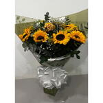 Este deslumbrante buquê de girassóis é composto por 10 unidades de sol radiantes, enfeitadas por belas folhagens verdes. O arranjo é cuidadosamente envolvido em uma camada cintilante de celofane colorido, que brilha à luz e adiciona uma dimensão de encanto surpresa a este lindo presente. A peça de resistência é finalizada com um laço de fita delicado para um toque de elegância indiscutível. Este buquê é perfeito para iluminar o dia de alguém!
