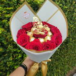 Este presente com chocolate é composto de 10 rosas colombianas, cuidadosamente selecionadas para garantir cores vibrantes e pétalas delicadas. Acompanha uma caixa de Ferrero Rocher com 8 unidades, proporcionando um toque irresistivelmente doce a este lindo presente. Tudo isso é cuidadosamente embalado em uma sofisticada embalagem coreana. Além disso, inclui um cartão onde você pode compartilhar suas palavras de amor, carinho ou gratidão. Ideal para ocasiões especiais e momentos românticos.
