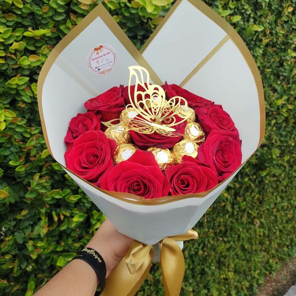 rosa colombianas - 10 un. ferrero rocher - 8 un. cartão - 1 un. embalagem coreana - 1 un.