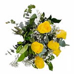 Este deslumbrante buquê é composto por 6 rosas amarelas robustas e vibrantes, delicadamente organizadas entre as folhagens frescas. Cada buquê é habilmente embalado e amarrado com um laço elegante para um acabamento perfeito. Ideal para qualquer ocasião, este buquê é uma representação perfeita do amor, admiração e respeito. Uma verdadeira obra de arte criada pela mãe natureza!