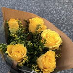 Este buquê encanta pela simplicidade e elegância. Composto por 5 rosas amarelas, a tonalidade do otimismo e da energia, e decorado com folhagens escolhidas especialmente no dia, para garantir frescor e beleza. A harmonia do arranjo é realçada pela embalagem exclusiva e um laço delicado, que adiciona um toque especial. Conquiste a felicidade e a alegria através deste belo buquê.