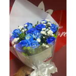 Encante-se com a beleza e sutileza deste buquê exclusivo. Composto por 12 rosas azuis suntuosas e elegantes, sua beleza é complementada por uma unidade cuidadosamente selecionada de folhagens. Seu toque final é um laço delicado e uma sofisticada embalagem, tornando este buquê uma expressão perfeita de admiração e carinho.
