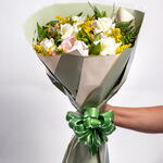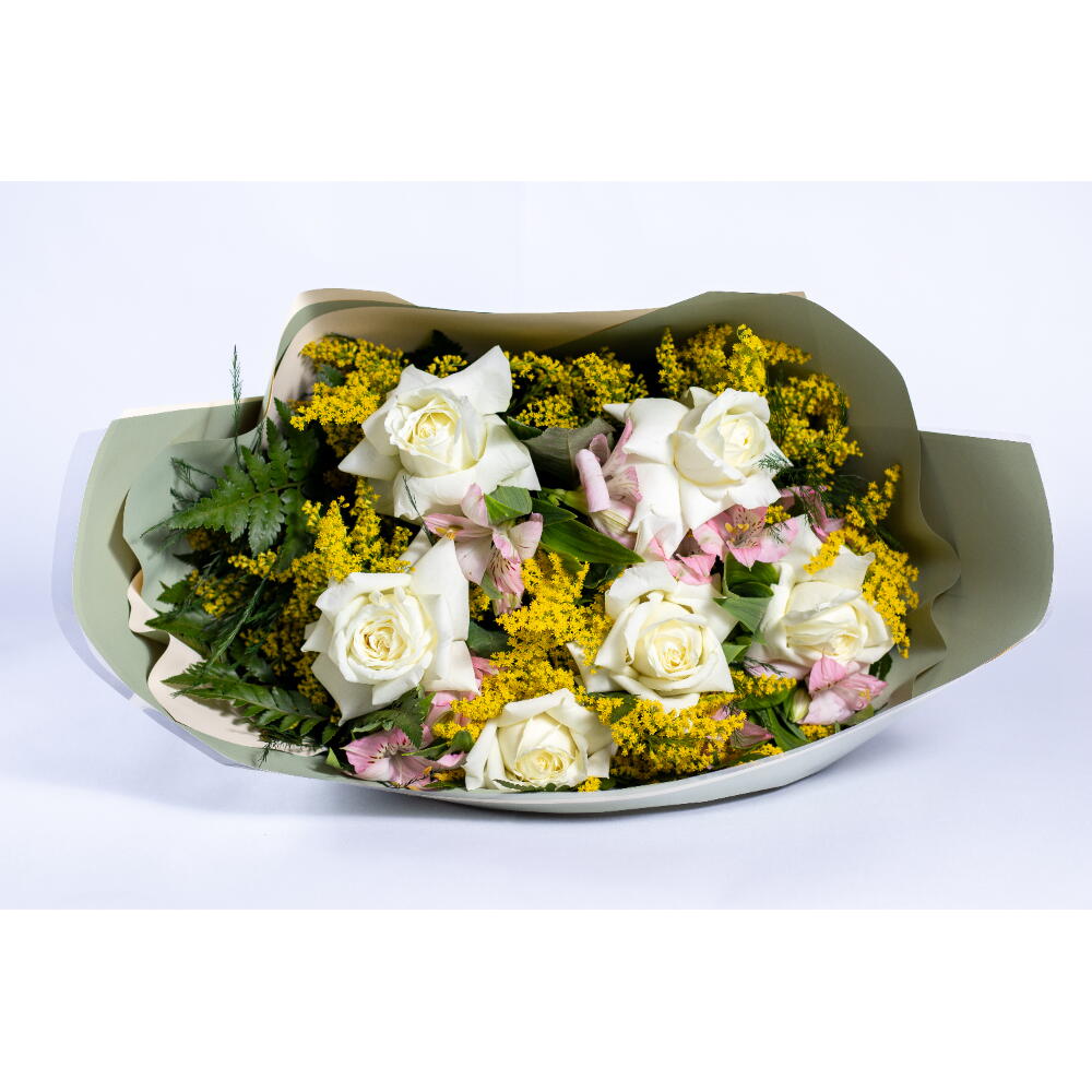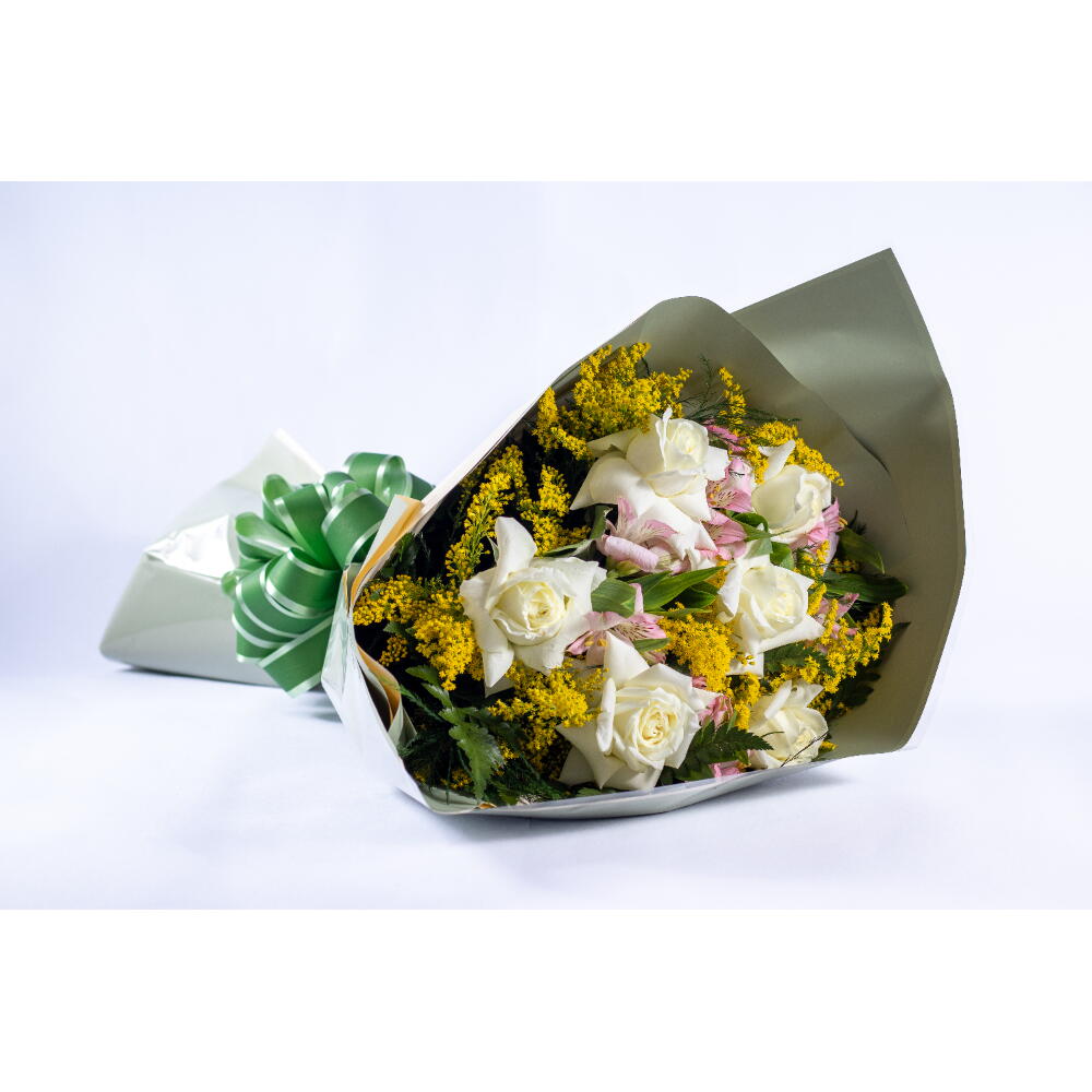 Este buquê é uma surpresa de tirar o fôlego, preparada com todo o carinho e dedicação para deixar qualquer ocasião mais especial. Composto por uma embalagem sofisticada, a beleza deste presente é enriquecida pela frescura e vitalidade de uma unidade de folhagem. A delicadeza e simbolismo do amor e pureza são representados em 6 imaculadas rosas brancas, união perfeitamente harmonizada por um gracioso laço. Ideal para tornar qualquer momento inesquecível.