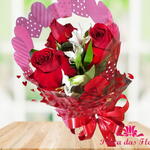 Lindo buque romantico composto por 3 rosas colombianas, alstromeria, folhagens nobre e celofane decorado e com laço. perfeito para surpreender alguem.