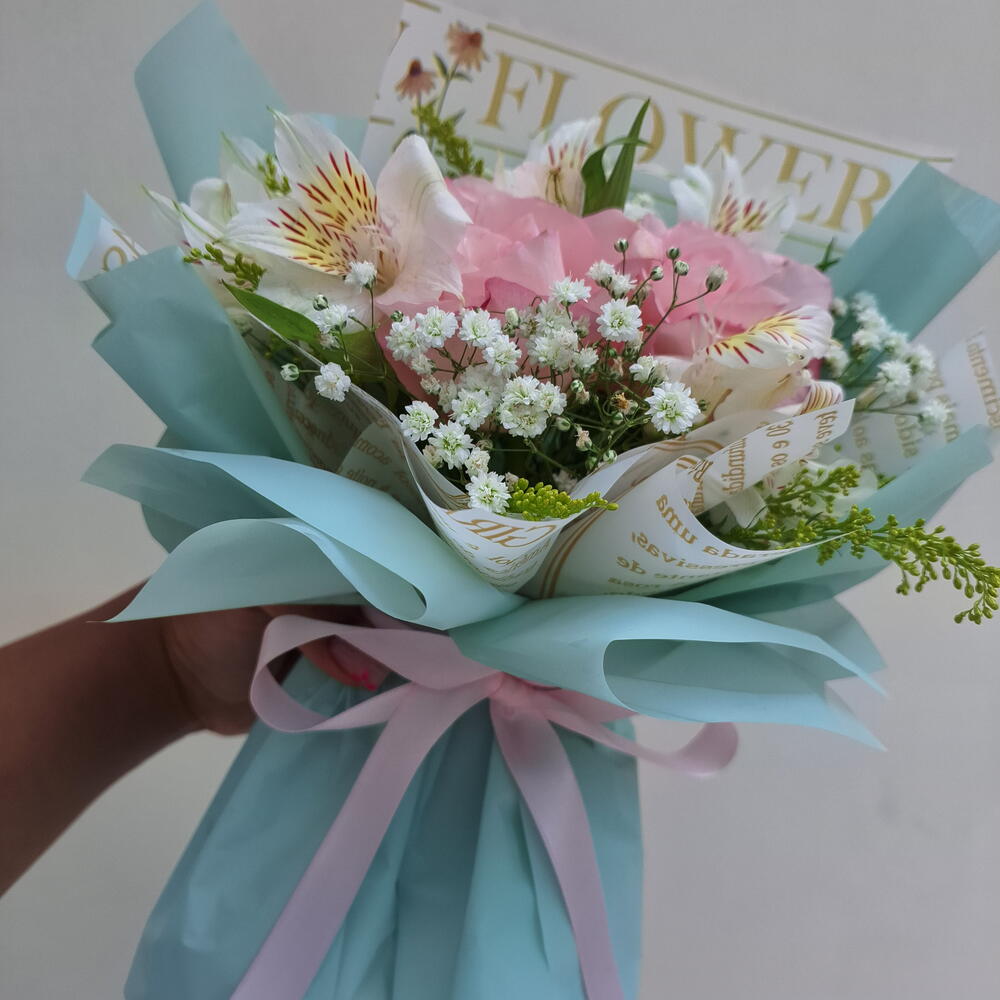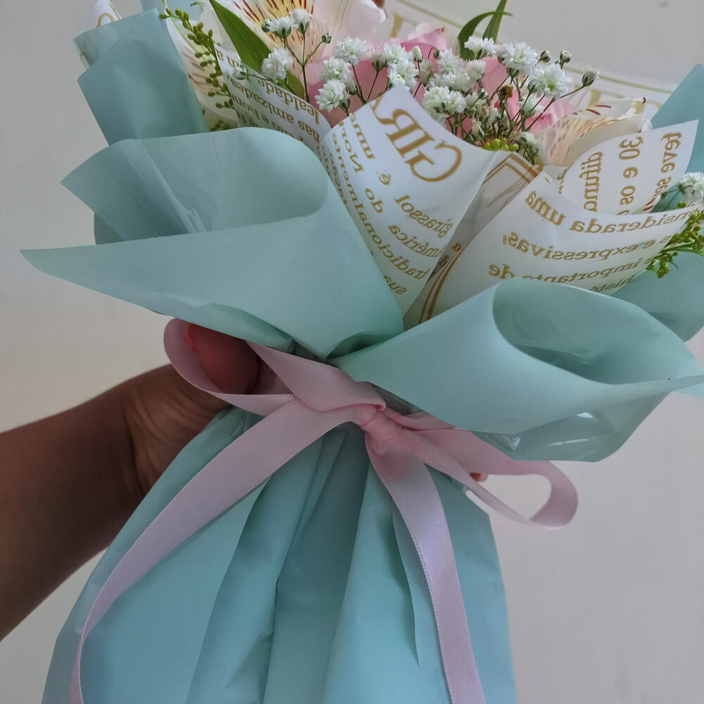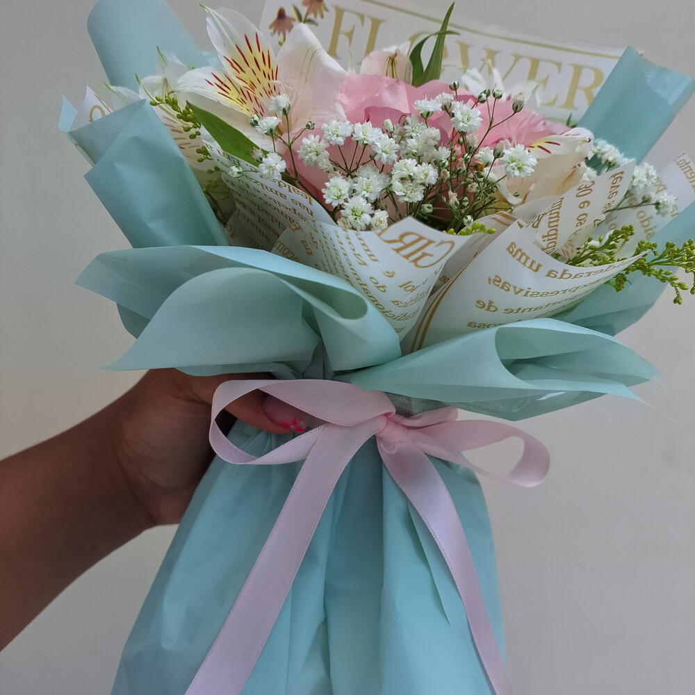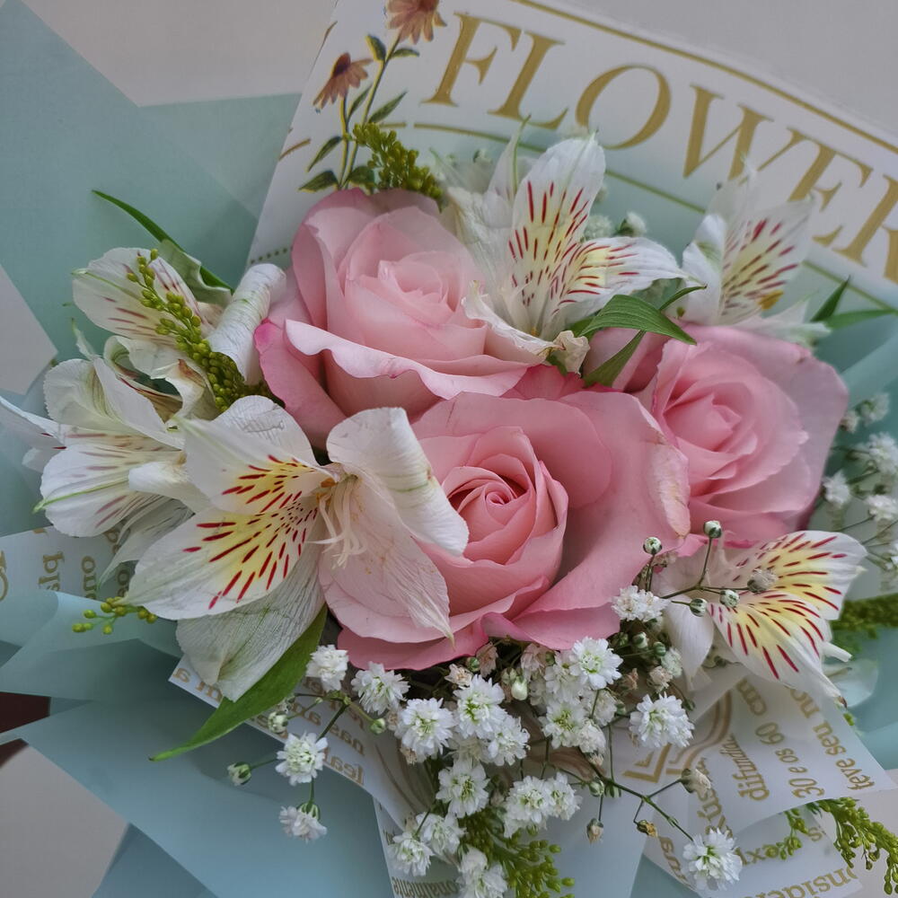 Delicado e elegante, este buquê é composto por 3 rosas rosas, símbolo de carinho e admiração, combinadas com astromélias, que representam amizade, afeto e bons desejos. A composição cria um arranjo leve e harmonioso, perfeito para presentear em momentos especiais ou demonstrar amor e gratidão no dia a dia. Montado com cuidado artesanal e finalizado com embalagem elegante, é uma opção charmosa, romântica e cheia de significado.