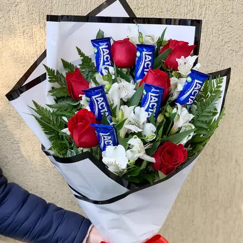 Buquê Rosas e Lacta ao Leite