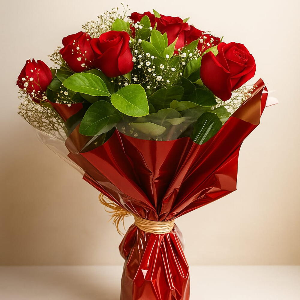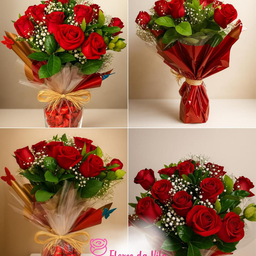 Presenteie alguém especial com este belíssimo conjunto de rosas vermelhas nacionais, delicadamente acomodadas com folhagens verdes e gypsophila para um toque de elegância suave. Cada conjunto é cuidadosamente embalado em uma embalagem especial e amarrado de maneira artesanal com um laço decorativo de ráfia, adicionando um gesto de refinamento. Além disso, este presente vem com um mini coração Bombonatti ao leite, uma deliciosa surpresa para satisfazer o paladar. Com um total de seis chocolates, é o presente perfeito para mostrar quanto você se importa.