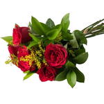 06 ROSAS NACIONAIS COM DETALHE DO TANGO E ENVOLVIDA POR RUSCUS E LAÇO RÁFIA. (enviar a cor da rosa em observação que iremos ver a disponibilidade)