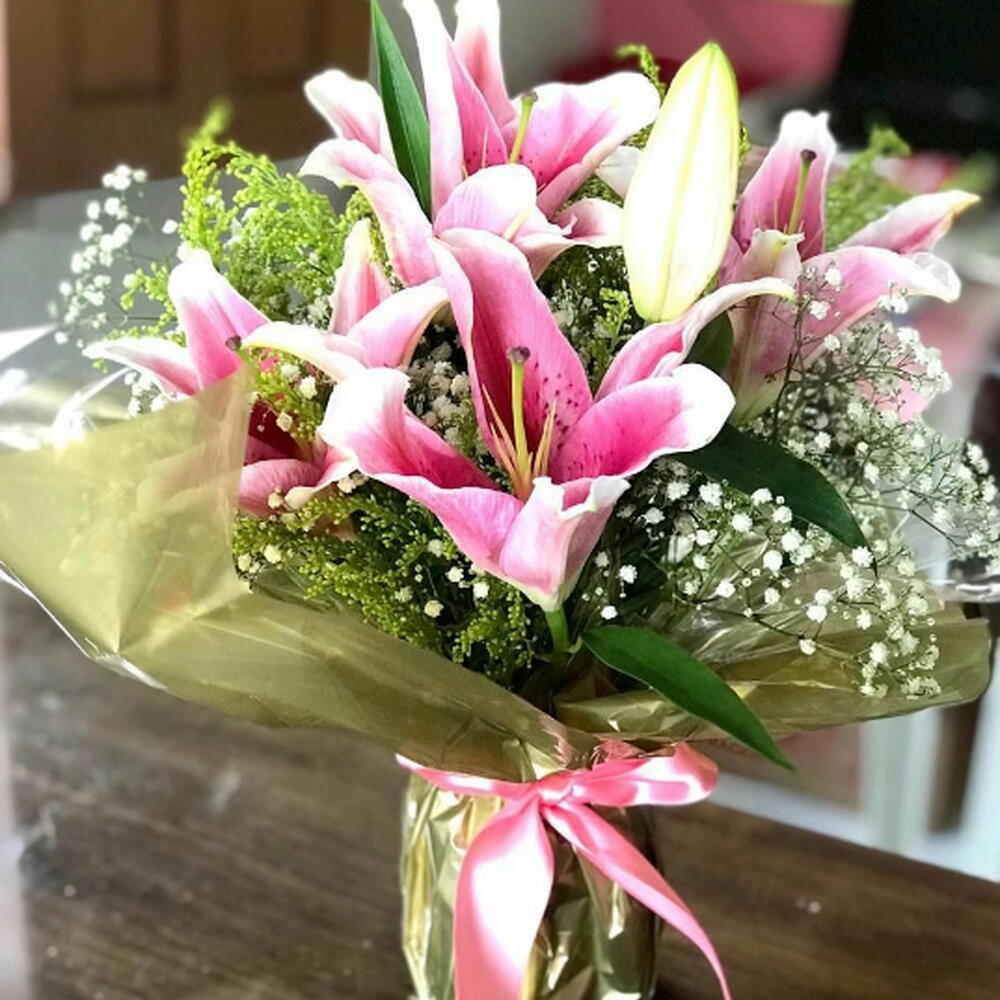 embalagem - 1 un. arranjo - 1 un. laço - 1 un. lírio - 1 un. mosquitinhos - 1 un.