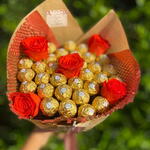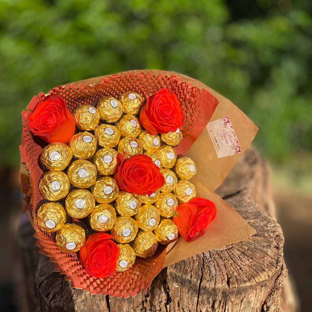 Este presente requintado é a escolha perfeita para qualquer ocasião. Dentro de uma embalagem elegante, você vai descobrir 30 deliciosos chocolates Ferrero Rocher, conhecidos pelo seu sabor divino. Acompanhando os chocolates, estão cinco lindas rosas naturais, adicionando um toque romântico ao presente. A decoração de borboleta adiciona um elemento de surpresa, enquanto a cartinha escrita à mão dá um toque pessoal que fará o destinatário se sentir verdadeiramente especial. Tudo isso é perfeitamente embalado e completado com um laço para a finalização perfeita.