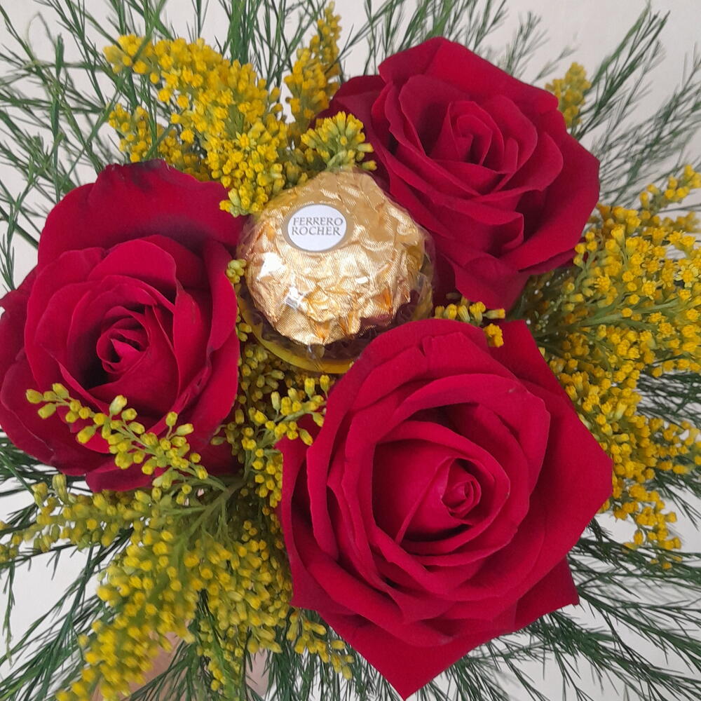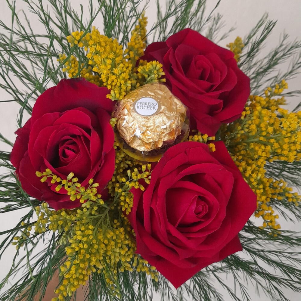 Encante alguém especial com este deslumbrante presente acompanhado de chocolates. A paixão é evidente em cada detalhe, com três rosas vermelhas vibrantes para transmitir amor e admiração. Para adicionar um toque final, o presente vem com uma unidade do apetitoso Ferrero Rocher e uma unidade de vassourinha e tango. Um gesto apaixonado e doce que com certeza será lembrado.