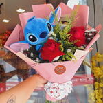 Buquê Stitch C/ 2 Rosas, Ferrero Rocher 100g e Pelucia Stitch PP