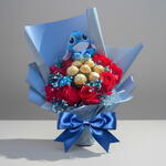 Este produto elegante e delicioso é o presente perfeito para todas as ocasiões. Confeccionado com 7 requintados chocolates Ferreiro Rocher e 8 luxuosas rosas vermelhas, e ainda o detalhe especial de um chaveiro do adorável Stitch. É a combinação perfeita de guloseimas e gestos amorosos que certamente impressionará a pessoa amada. Não perca a chance de expressar seus sentimentos de uma maneira verdadeiramente única com este esplêndido presente com chocolate.