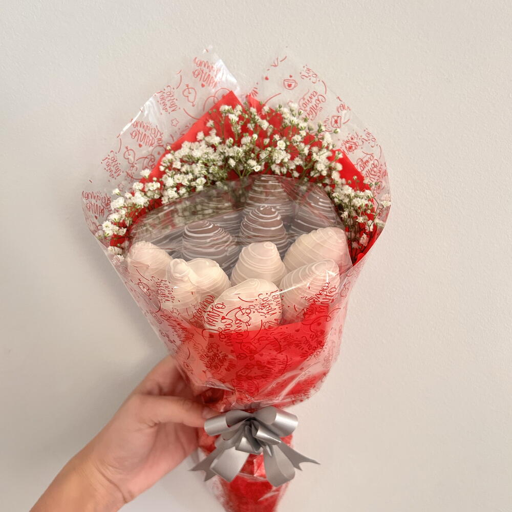 embalagem - 1 un. laço - 1 un. morangos - 12 un. mosquitinhos - 1 un.