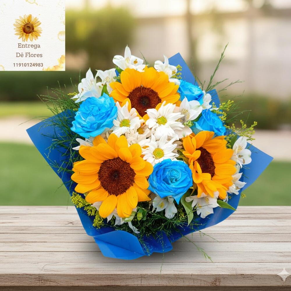 ⸻ 🌻 Buquê Van Gogh 💙💛 Inspirado nas cores vibrantes e marcantes das obras de Van Gogh, esse buquê é pura alegria e personalidade. A combinação do amarelo intenso dos girassóis com o azul das rosas cria um contraste moderno, elegante e cheio de vida. 💐 Composição: • Girassóis exuberantes • Rosas azuis marcantes • Flores brancas delicadas (como Astromelia ou flores da época) • Toques de solidago • Folhagens naturais • Embalagem premium em azul ✨ Perfeito para: • Presentes alegres e cheios de significado • Aniversários • Surpreender alguém especial • Iluminar o dia de quem você ama 💛 Um buquê vibrante que transmite energia, felicidade e carinho. 🚚 Entrega rápida 📲 Peça agora: 11 ⚠️ Observação: As flores de complemento podem ser substituídas conforme a disponibilidade, frescor e época, mantendo sempre a harmonia e beleza do buquê.