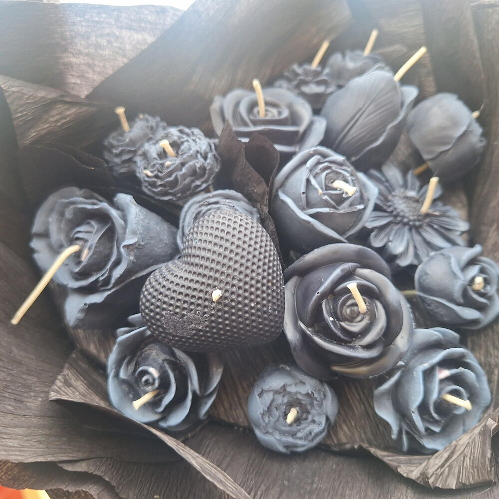 Lindo buque de velas aromáticas vegetais em formatos variados de flores, na cor preta, no aroma love (inspirado no aroma love speels) Fazemos também em outras cores e aromas, conforme disponibilidade em estoque! Após a compra entre em contato conosco para informar a cor e aroma desejados!
