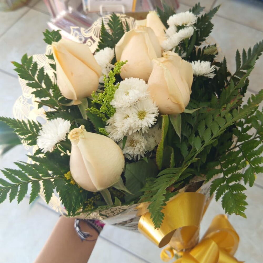 Um buquêzito delicado e apaixonante com rosas, simbolizando o renascimento do amor. Perfeito para surpreender quem ilumina seus dias. Um presente que fala sem palavras. É de responsabilidade do cliente que formar a cor que deseja via chat, caso contrário a floricultura se responsabiliza por enviar as cores disponíveis da maneira mais bonita e elegante possível