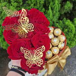 1 Caixa Cartonada Coração 12 Rosas Colombianas 🌹 3 Borboletas Dourada 12 Ferrero Rocher Lindo laço