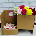 Encante o seu ente querido com este presente magnífico que amalgama o romantismo de 12 rosas naturais e a indulgência de 9 bombons de chocolate fino. Tudo embalado numa elegante caixa, torna-se um presente perfeito para expressar o seu amor e carinho.