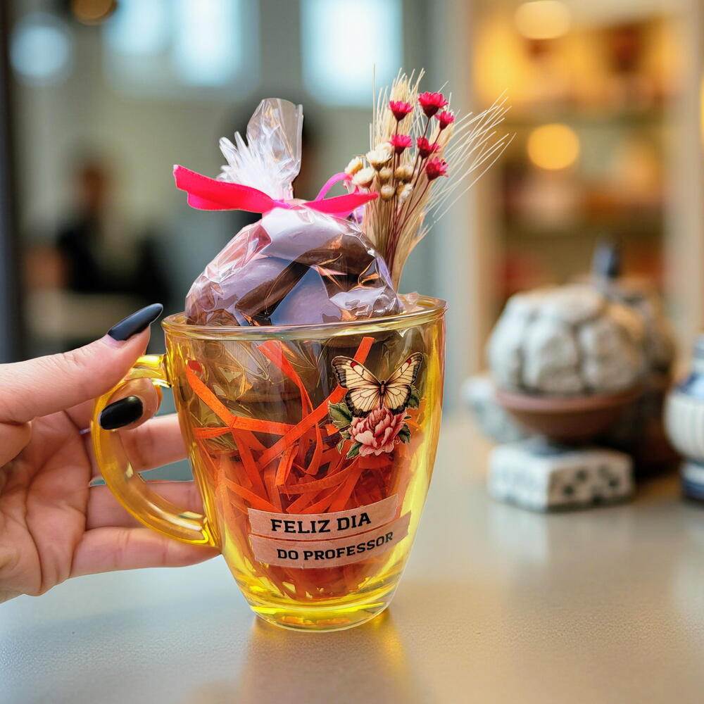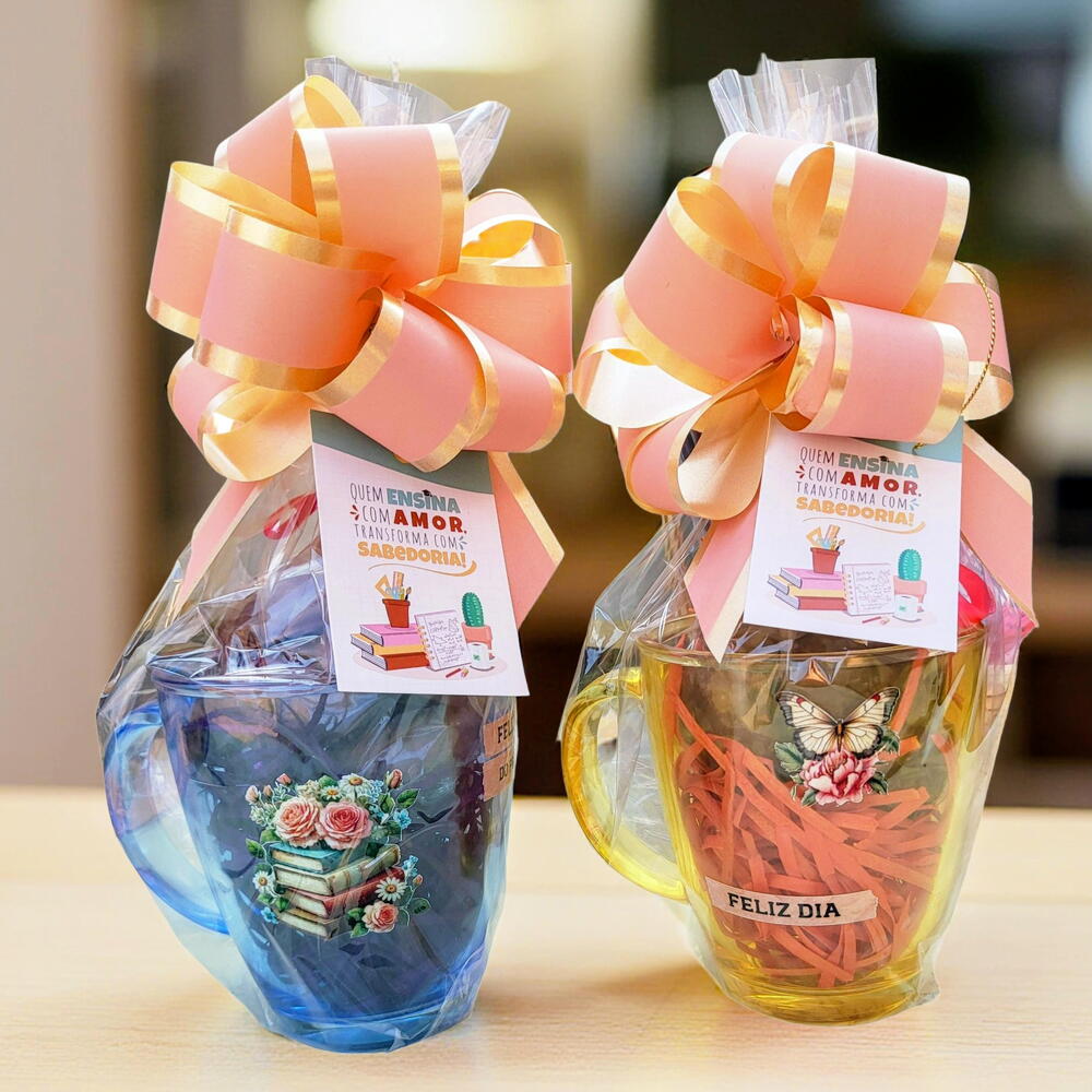 ✨🎁 Surpreenda seu professor(a) neste Dia dos Professores com um presente especial! Nossas canecas são perfeitas para transmitir carinho e gratidão. Cada uma é embrulhada com amor e traz mensagens inspiradoras que vão alegrar o dia de quem ensina! 💖📚 Mostre o quanto você valoriza essa dedicação! 🌟 A caneca contém porções de 5 pão de mel delicioso 😋 cobertura de chocolate 🍫 e um lindo buque de flores sempre vivas além da embalagem o laço e o cartão personalizado todos os nossos presentes 🎁 vão em uma sacola presenteavel. 🌟 **Personalização:** Modificamos a tag para atender qualquer ocasião! Aniversários, Dia das Mães, Natal ou apenas para dizer eu te amo!