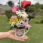 Este adorável arranjo de flores naturais é a personificação da delicadeza e elegância. Composto por uma variedade de flores finamente selecionadas, este arranjo vem delicadamente apresentado em uma caneca estilosa. O arranjo é acentuado por um mini balão, um toque divertido que adiciona um elemento de surpresa. Tudo é lindamente embalado e finalizado com um laço, tornando-o o presente perfeito para demonstrar seu carinho e apreciação.