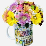 embalagem para presente - 1 un. cartão mensagem - 1 un. caneca de porcelana personalizada - 1 un. mix de flores variadas - 1 un. tag - 1 un.