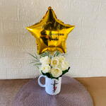 folhagens - 1 un. rosa brancas - 6 un. xicara - 1 un. balão estrela - 1 un.