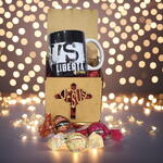 laço - 1 un. saco celafone - 1 un. caixa mdf jesus - 1 un. caneca personalizada jesus liberta - 1 un. trufas sortidas cacau show 30g - 3 un.