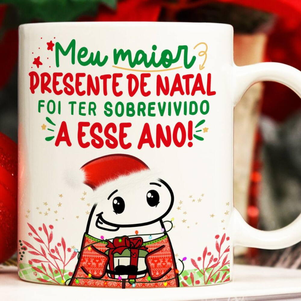 caneca natal flork - meu maior presente de natal foi ter sobrevivido a esse ano - 1 un.